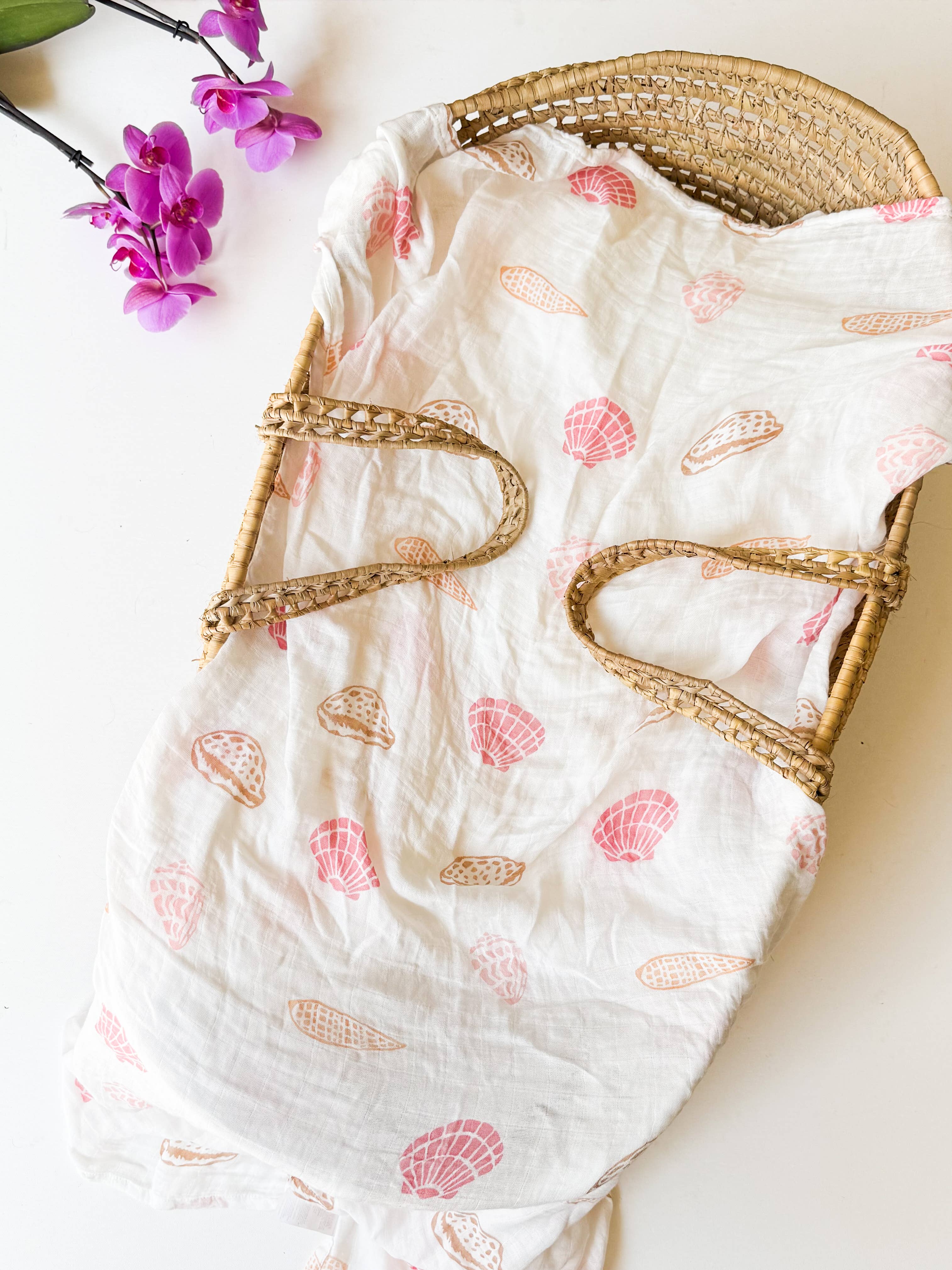 Organic Seashell Baby Swaddle | Coastal Nursery Decor