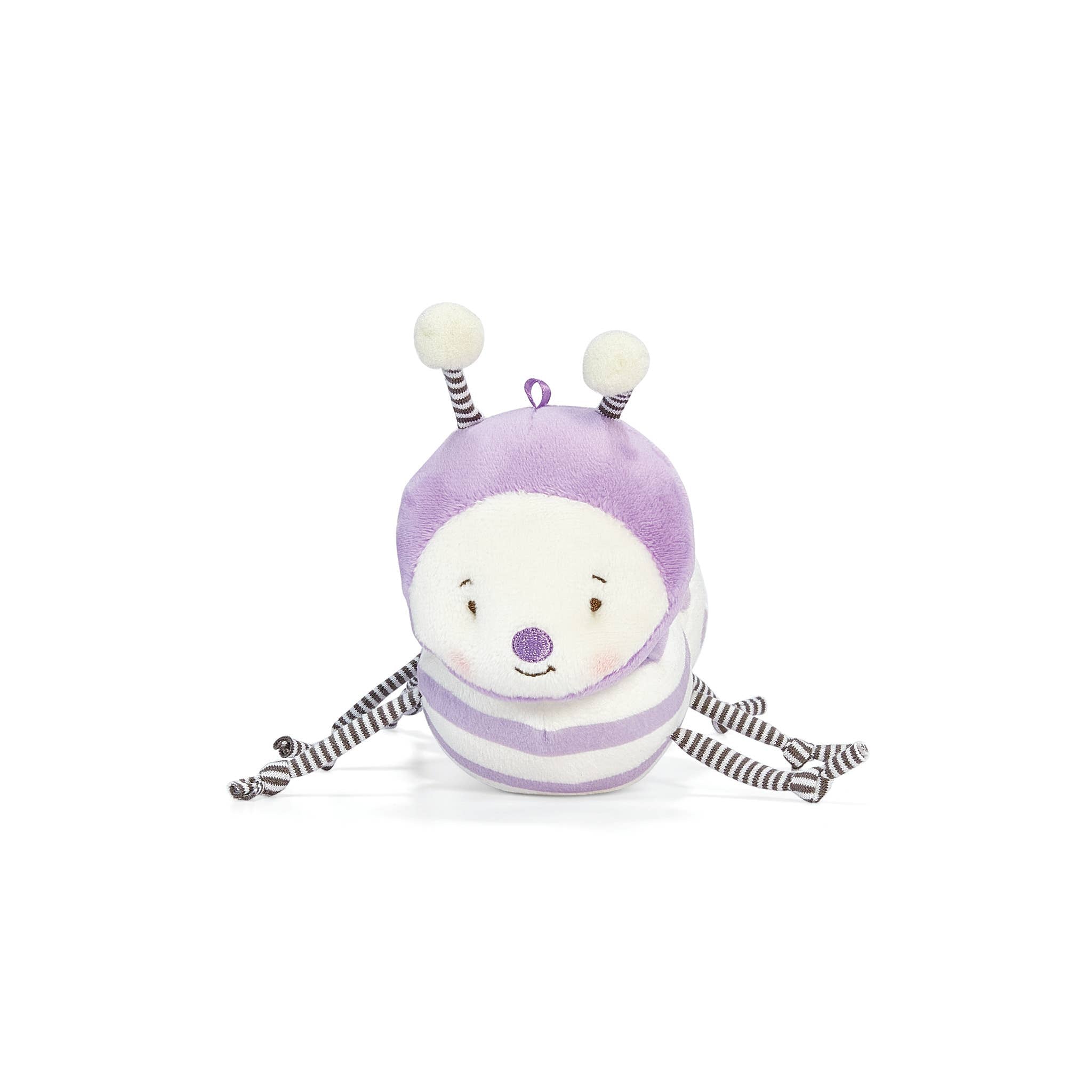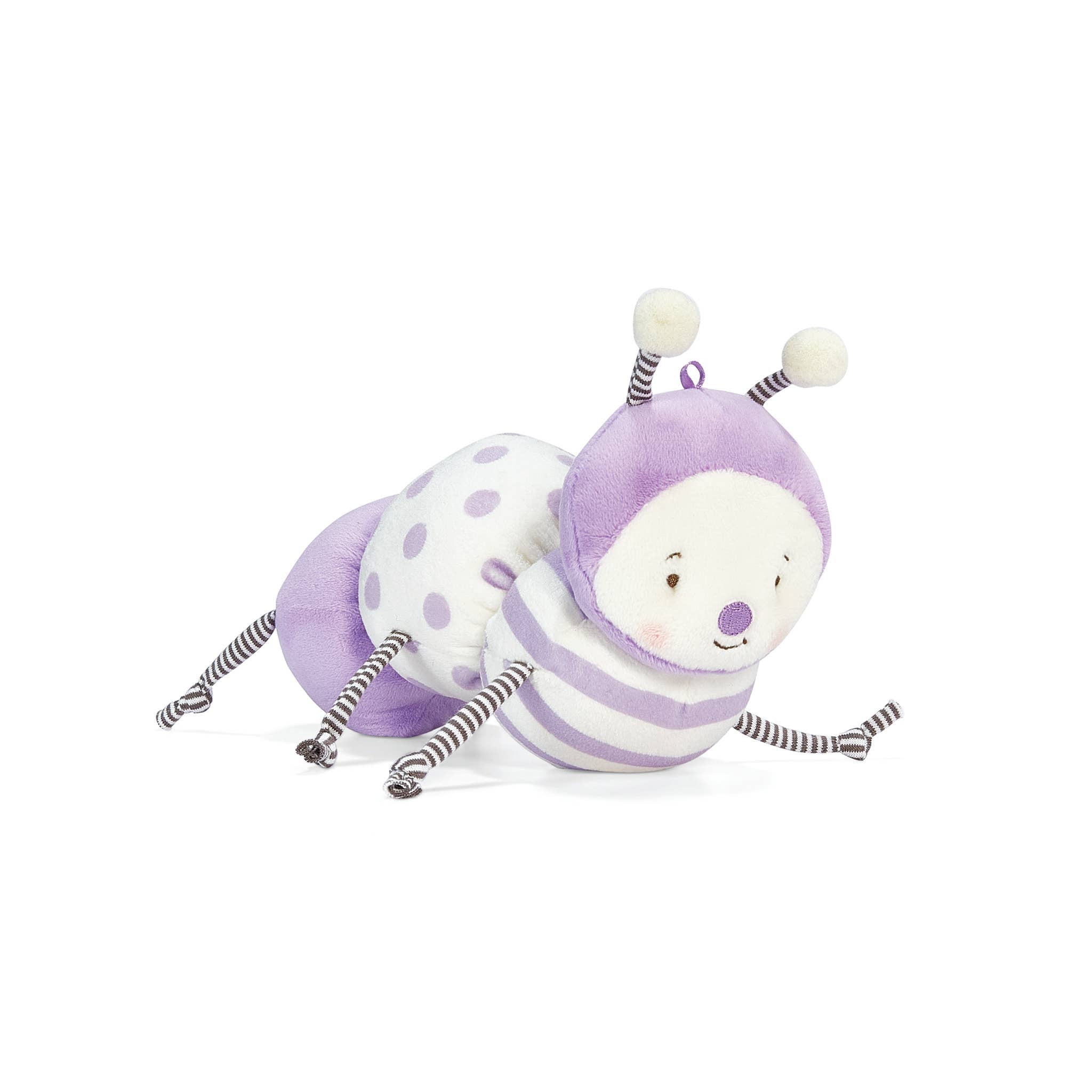 Caterpillar, a special garden friend that’s as playful as a springtime breeze. Caterpillar’s body is soft, velour delight with a lovely purple and cream patterns, reminiscent of the garden’s most enchanting flowers. Caterpillar’s embroidered features capture a friendly and endearing expression, making this garden companion truly unique. With dangly arms, legs, and antennas, she is always ready for imaginative adventures and cuddly moments. With every hug, Caterpillar reminds you that life is full of surprises and the beauty of nature is all around us.