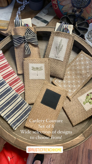 Shop Cutlery Couture Silverware Pouches and discover our unique way of "dressing" the table. We believe that the most meaningful moments are those spent with friends and family; sharing a table, a meal, and a toast “To good friends, good times and the good life!” We were inspired by the chic simple table settings we encountered traveling in Europe, and designed our silverware pouches to capture that French farmhouse feel, perfectly simple but simply sophisticated.