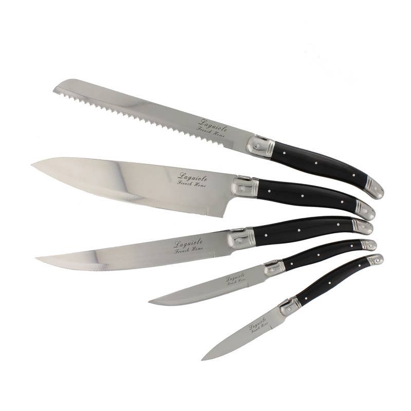 Whether carving a roast, chopping vegetables or slicing a loaf of fresh bread the French Home kitchen knife set is perfect for all your food preparation needs. The traditional French Laguiole design add an elegance to your kitchen and inspiration to your cooking.