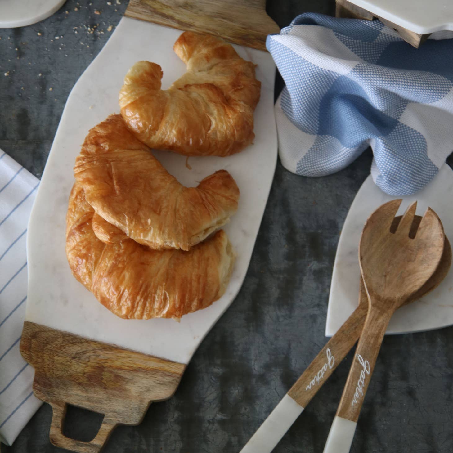 - Quality craftsmanship from artisans in India is paired with the timeless look of white marble and finished with sustainable mango wood.