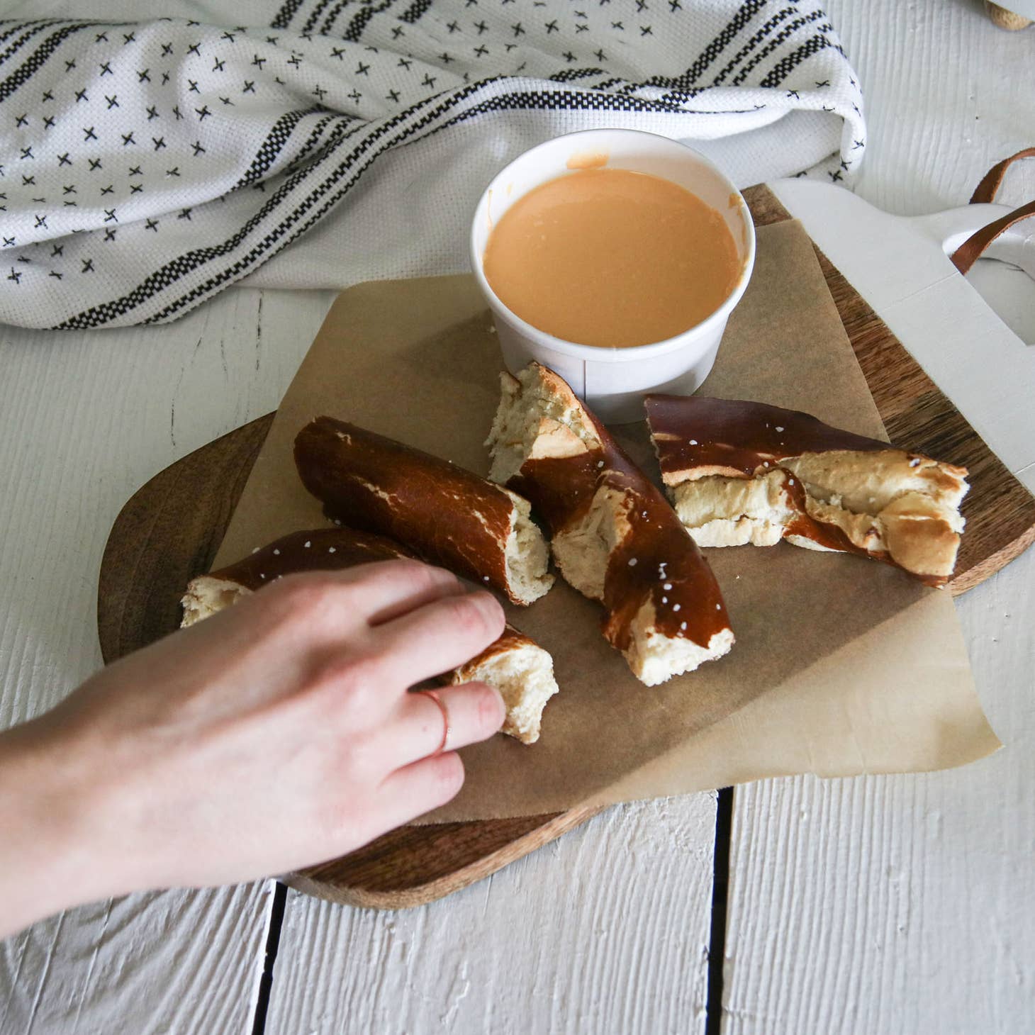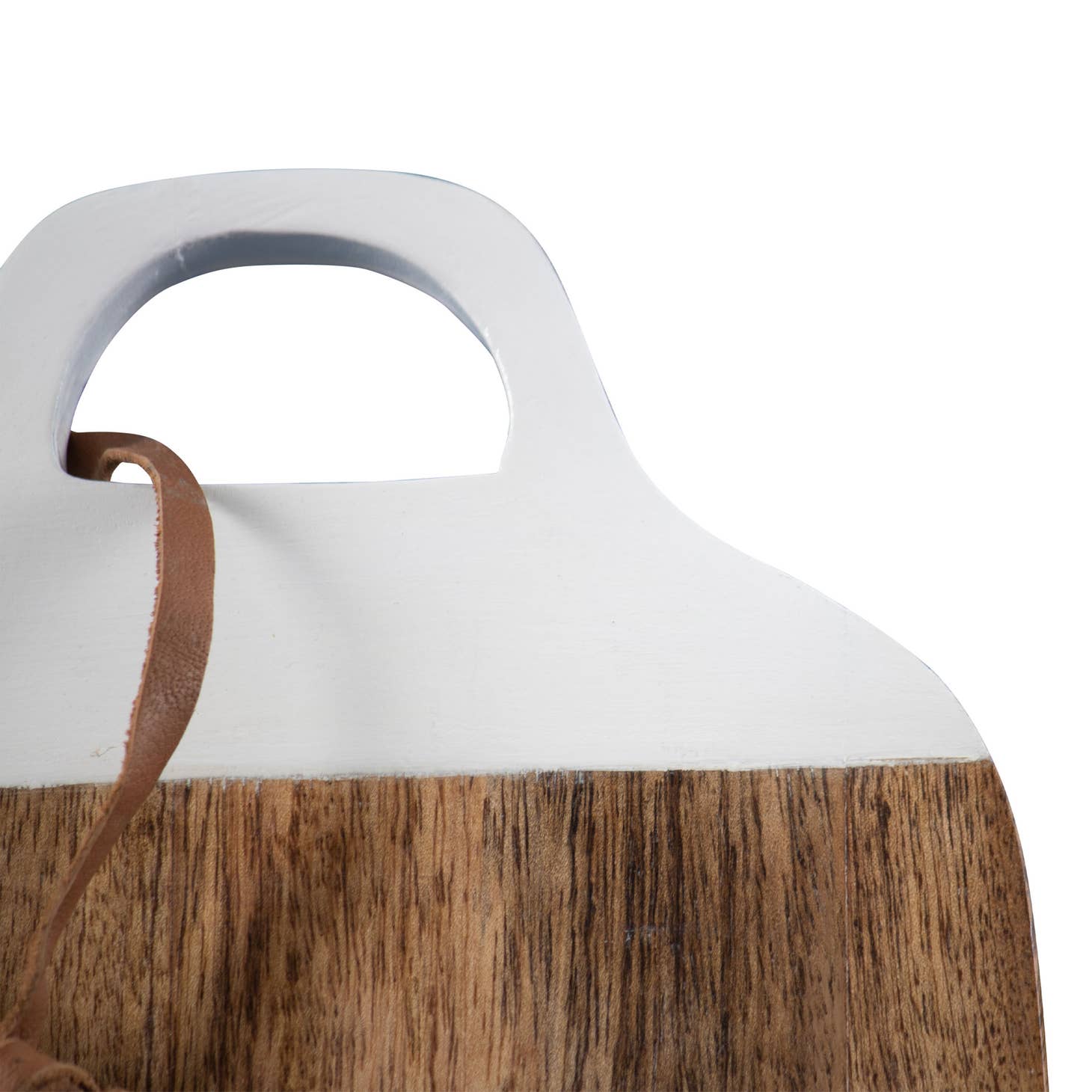 This practical and timeless Mabel Cutting Board strikes the perfect balance between modern and classic, with mango wood, a food-safe finish, white enamel paint, and a leather tie hanger. Serve up style with an essential entertaining accessory, or let its elegance elevate any kitchen even when it's not in use!